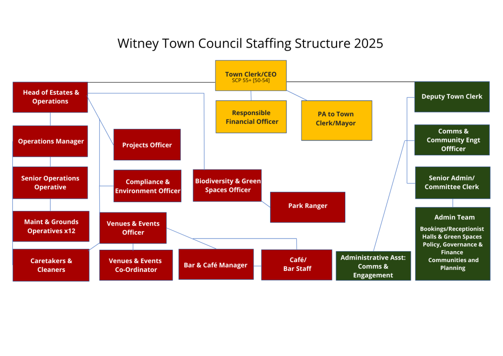 The Chief Executive of the Town Council, is the council’s most senior officer and responsible for the council’s staff, working closely with the council leader and responsible for advising the council on strategy, policy and making recommendations to the council. The Chief Executive is the designated Head of Paid Service under the Local Government and Housing Act 1989 and Proper Officer under the Local Government Act 1972.