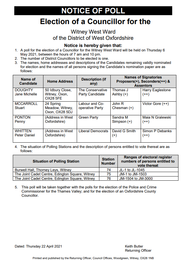 Temporary Road Closure , No Waiting and One Way Restriction – at Witney, various roads