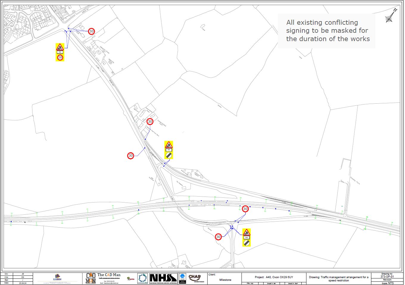 3. The order will also reduce the national 60 mph limit to 30 mph on the B4022 (slip road off the A40 westbound) from the junction with South Leigh Road to the 20mph limit at the junction with Jubilee Way traffic lights; and also on the eastbound A40 slip road for 100 metres.