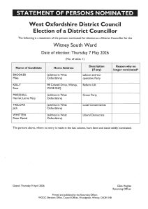 Statement of Persons Nominated – West Oxfordshire District Council Election of a District Councillor